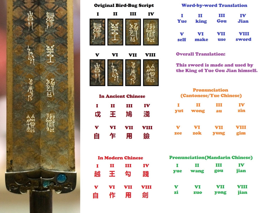 越王勾践剑刻字解析(∧ 维基百科, Yutwong, CC BY-SA 3.0)