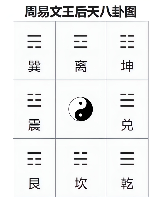 周易文王后天八卦图(∧ 维基百科, “八卦” 条目, CC BY-SA 3.0)